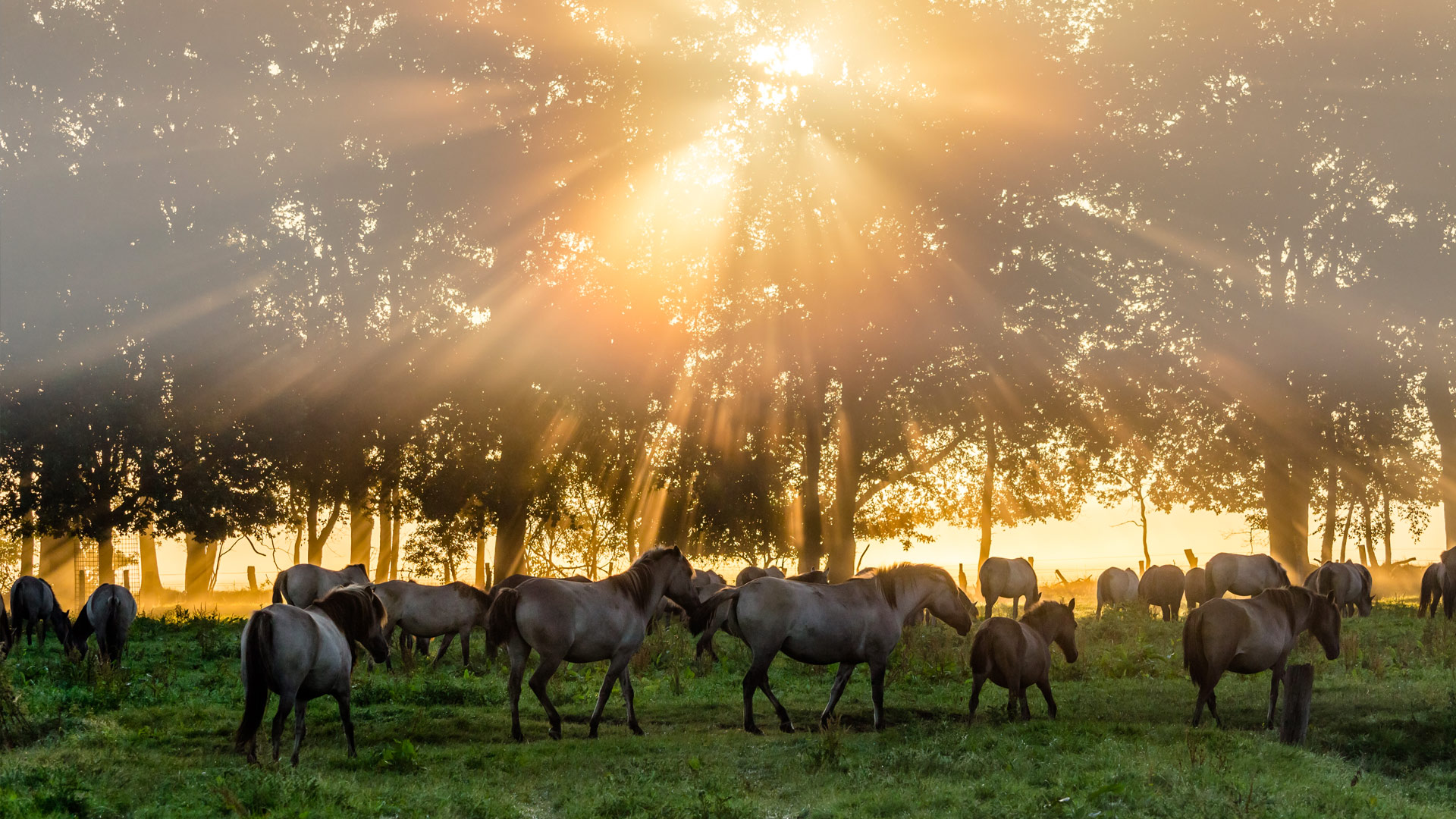 Etwa 12 km westlich der Stadt Dülmen, im Merfelder Bruch, lebt eine Herde wilder Pferde: die etwa 350 Dülmener Wildpferde sind heute die einzige frei lebende Wildpferdeherde in ganz Europa.