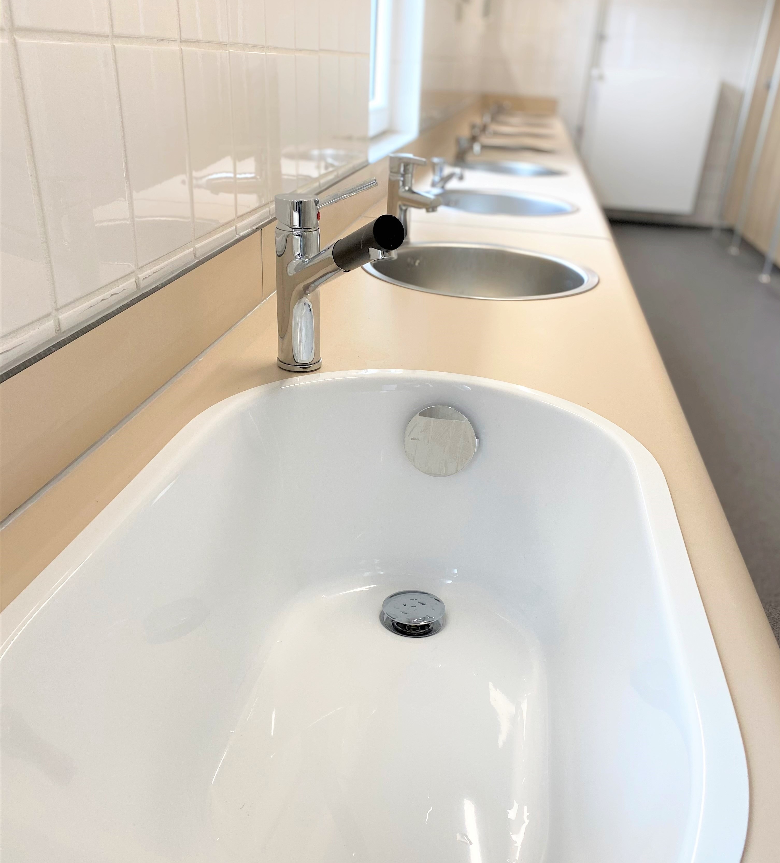 Ein in 2021 frisch saniertes Duschhaus mit Warmwasserduschen, Babywaschbecken und Waschtischen sowie 3 Eltern-Kind-Kabinen wird ganzjährig geheizt und täglich gereinigt. Ein geräumiger und barrierefreier Sanitärraum für Personen mit Beeinträchtigung steht mit sämtlichen Hilfseinrichtungen zur Verfügung.