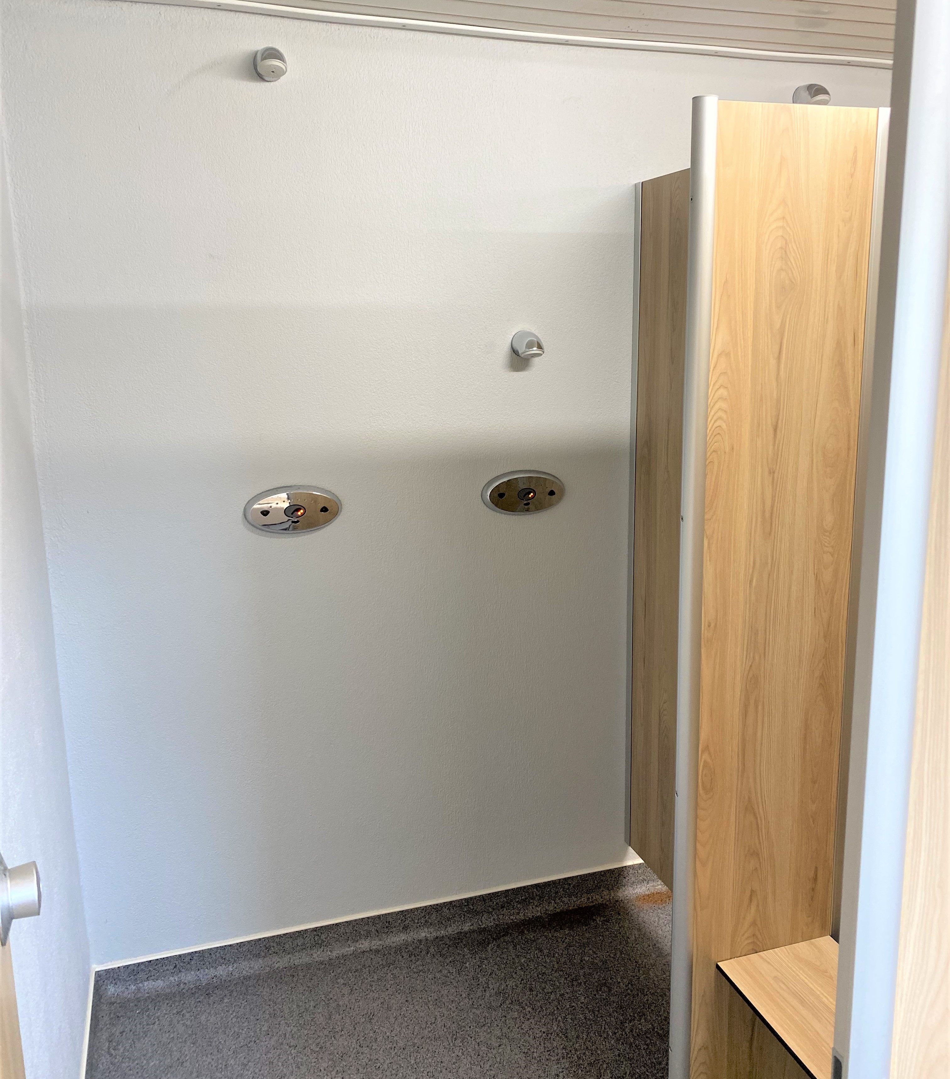 frisch saniertes Duschhaus mit 3 Eltern-Kind-Kabinen, Wickeltisch und Babyduschbecken