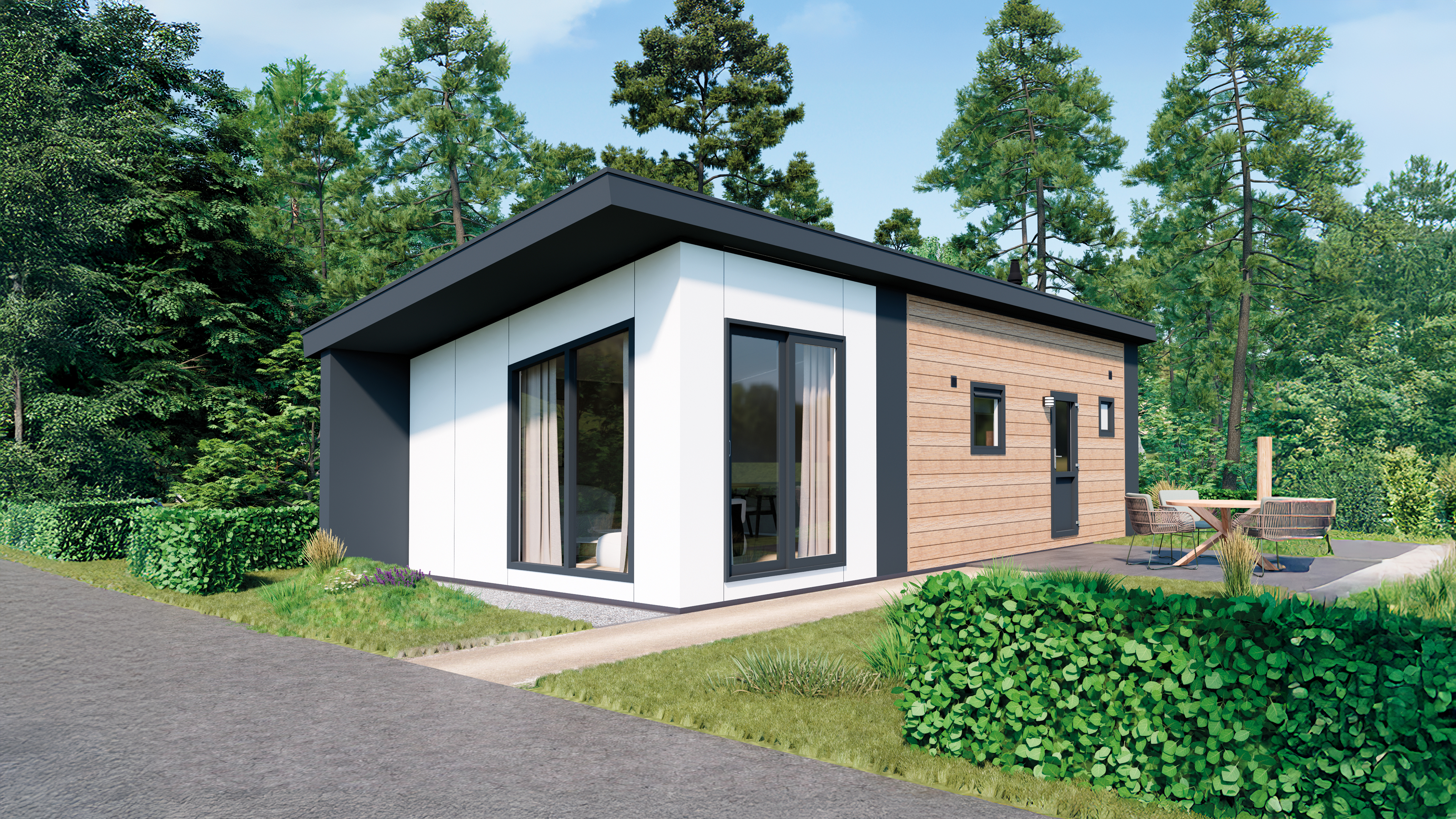 Das moderne Miami verfügt über ein trendiges Pultdach und dank der großzügigen Fensterpartien können Sie das ganze Jahr hindurch die Natur genießen. Ein fantastisches Mobilheim mit einer Anspielung an den klassischen Mobilheimbau.